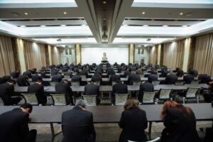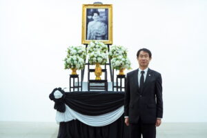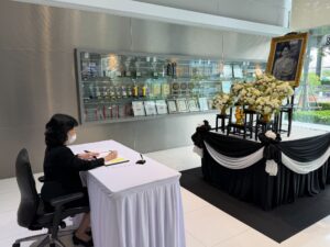-ในพิธีถวายอาลัยซึ่งจัดขึ้นที่ห้องประชุมชั้น 20 ของอาคารสำนักงานใหญ่นั้น มร. ทาคาชิ ฮาตะ กรรมการผู้จัดการ บริษัท ตรีเพชรอีซูซุเซลส์ จำกัด เป็นผู้กล่าวนำ โดยมี คณะผู้บริหารของบริษัทในกลุ่มตรีเพชรร่วมยืนสงบนิ่งเป็นเวลา 3 นาที หลังจากนั้นได้ร่วมกันร้องเพลงสรรเสริญพระบารมี และก้มศีรษะกราบสงบนิ่งเป็นเวลา 30 วินาที เพื่อถวายบังคมและน้อมสำนึกในพระมหากรุณาธิคุณอันหาที่สุดมิได้ของสมเด็จพระนางเจ้าสิริกิติ์ พระบรมราชินีนาถ พระบรมราชชนีพันปีหลวง ที่ทรงมีต่อทั้งปวงชนชาวไทยและประเทศไทยตลอดพระชนม์ชีพของพระองค์ท่าน