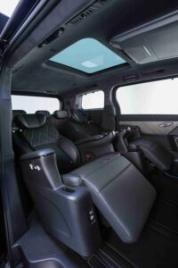 ด้านการออกแบบภายในเน้นความโปร่งโล่ง เดินได้สะดวกสบายด้วยความสูงภายใน 1,277 มม. ขณะที่ช่องทางเดินกลางกว้างถึง 170 มม. หรูหราด้วยวัสดุหนัง NAPPA สัมผัสนุ่ม หรูหรา ทนทาน ไม่ระคายเคืองผิว ระบายอากาศได้ดี และทำความสะอาดง่าย เบาะแถวสองแบบ Zero-Gravity ทำให้ผู้โดยสารแถวสองรู้สึกสบายเหมือนนั่งอยู่ในอวกาศที่ปราศจากแรงโน้มถ่วง ซึ่งได้รับแรงบันดาลใจจากเทคโนโลยีการบินและอวกาศของ NASA
