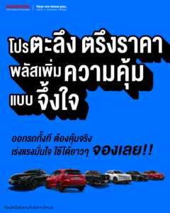 –การปรับโครงสร้างภาษีสรรพสามิตใหม่สำหรับรถยนต์ปี 2569 ส่งผลให้ต้นทุนทางภาษีขยับตัวสูงขึ้นในหลายเซกเมนต์ บริษัท ฮอนด้า ออโตโมบิล (ประเทศไทย) จำกัด ประกาศ ไม่ปรับขึ้นราคาจำหน่ายรถยนต์ทุกรุ่นถึงวันที่ 6 เมษายน 2569 พร้อมมอบแคมเปญพิเศษ “Honda โปรตะลึง ตรึงราคา! พลัสเพิ่มความคุ้มแบบจึ้งใจ” จัดเต็มสิทธิพิเศษเพิ่มเติมสูงสุด 85,000 บาท ดอกเบี้ย 0% หรือผ่อนสบายเริ่มต้นเพียง 2,500 บาท นานสูงสุด 84 เดือน* เมื่อจองตั้งแต่วันที่ 1 กุมภาพันธ์ 2569 ถึงวันที่ 6 เมษายน 2569 และรับรถภายใน 10 เมษายน 2569 เพื่อให้ลูกค้าตัดสินใจเป็นเจ้าของรถยนต์ฮอนด้าได้ง่ายขึ้น