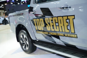 • ISUZU D-MAX HI-LANDER “TOP SECRET X ISUZU D-MAX” ครั้งแรกที่สำนักแต่งรถชื่อดังระดับโลกจากญี่ปุ่น “TOP SECRET” เลือกรถปิกอัพไปแต่งแบบเต็มพิกัด ด้วยชุดแต่งคาร์บอนไฟเบอร์เกรดพรีเมียมรอบคัน เพิ่มความดุดันและมีน้ำหนักเบา แรงเต็มสูบด้วยการปรับแต่งเพิ่มความแรงเครื่องยนต์จากสำนัก ECU Shop เน้นแรงแบบไร้ควัน เพิ่มสมรรถนะช่วงล่างให้รับกับความแรง ด้วยชุดช่วงล่างจาก PROFENDER พร้อมระบบเบรก AP RACING จับคู่กับล้อยอดนิยมตลอดกาล RAYS ENGINEERING VOLK RACING รุ่น TE37 ขนาด 18 นิ้ว จากญี่ปุ่น ยาง BRIDGESTONE ALENZA 001 เสริมอารมณ์สปอร์ตให้กับการขับขี่ พร้อมชุดแต่งภายในคาร์บอนไฟเบอร์เกรดพรีเมียมของ TOP SECRET เบาะรถแข่งคู่หน้า RECARO รุ่น TOM CAT และพวงมาลัยเรซซิ่งของ SARD