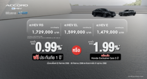 ( 23-08-2025 ) “ฮอนด้า”เปิดตัว แอคคอร์ด อี:เอชอีวี ใหม่ 3 รุ่นย่อย รุ่น e:HEV E 1,479,000 บาท / รุ่น e:HEV EL 1,599,000 บาทรุ่น e:HEV RS 1,729,000 บาท!!! เติม ! Blind Spot Information และ Cross Traffic Monitor ในทุกรุ่นย่อย จัดเต็มโปรแรง Honda Pro OH! MY GOOOOD ครอบคลุมไลน์อัป xEV ที่งาน BIG MOTOR SALE 2025 วันที่ 22 – 31 ส.ค. 68 และโชว์รูมฮอนด้าทั่วประเทศ!!!