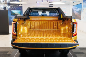 -TOYOTA HILUX TRAVO-e /Double Cab 4TREX ระบบขับเคลื่อนไฟฟ้า ระบบ Dual Motor มอเตอร์คู่ ขับเคลื่อน 4 ล้อ แบบ All-Wheel Drive ให้กาลังรวมสูงสุด 196 แรงม้า (144 กิโลวัตต์) ชุดมอเตอร์ไฟฟ้าหน้าแรงบิดสูงสุด 205 นิวตันเมตร ชุดมอเตอร์ไฟฟ้าหลังแรงบิดสูงสุด 269 นิวตันเมตร ความจุแบตเตอรี่ลิเทียมไอออนขนาด 59.2 kWh ระยะทาง 315 กม. (อ้างอิงจาก Eco Sticker ตามมาตรฐาน NEDC) รองรับการชาร์จแบบ AC สูงสุดที่ 10 kW และ แบบ DC สูงสุดถึง 125 kW -“DIAMOND GUARD” เทคโนโลยีปกป้องแบตเตอรี่และชุดขับเคลื่อนไฟฟ้า ช่วยปกป้องแบตเตอรี่และชุดขับเคลื่อนไฟฟ้าด้วยแผ่นปิดเสริมความปลอดภัย ทั้งด้านหน้าและใต้ท้องรถ แบตเตอรี่ยึดกับเฟรมย่อยเป็นรูป Diamond Shape ช่วยลดความเสียหายต่อแบตเตอรี่จากการบิดตัวของเฟรมระหว่างการใช้งาน